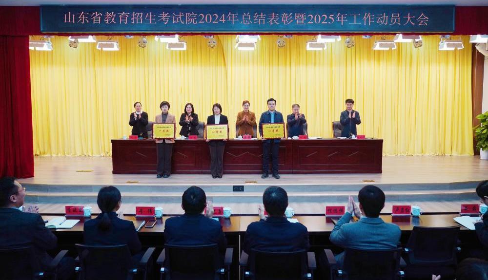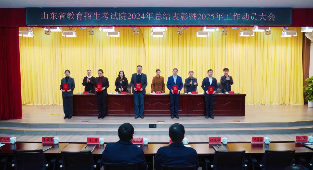 2月10日下午,山東省教育招生考試院召開2024年總結表彰暨2025年工作動員大會,回顧總結過去一年的工作,隆重表彰2024年表現突出集體和個人,動員全院干部職工振奮精神、砥礪奮進,以昂揚狀態和奮斗姿態,全力以赴推動2025年教育招生考試工作高起點開局、高效率推進、高標準落實。院黨委書記、院長李霞出席會議并講話。