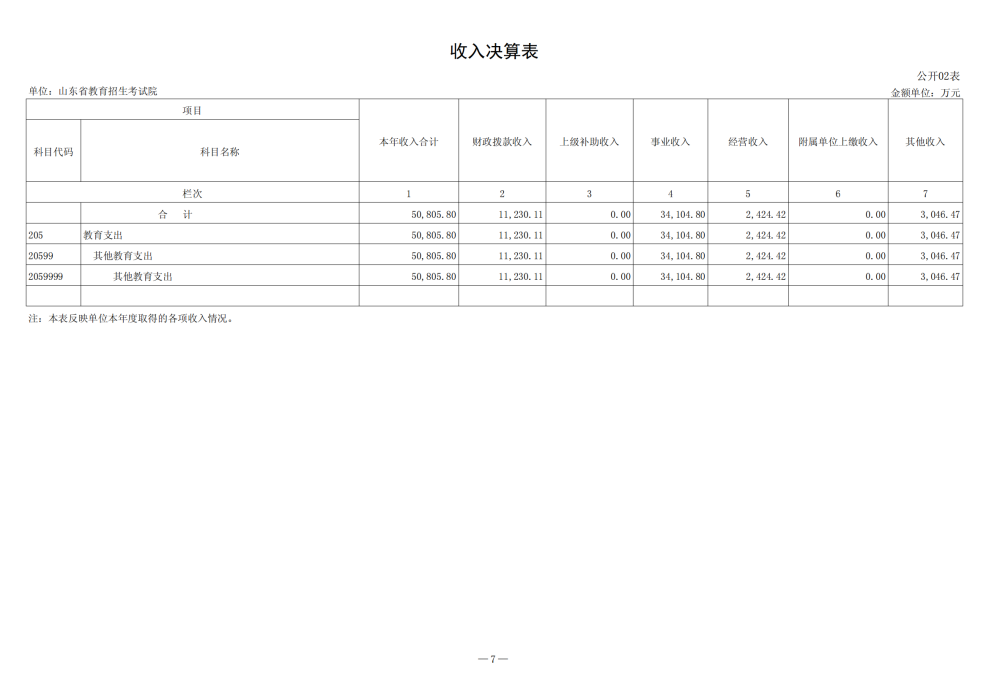 2024年山東省教育招生考試院決算
